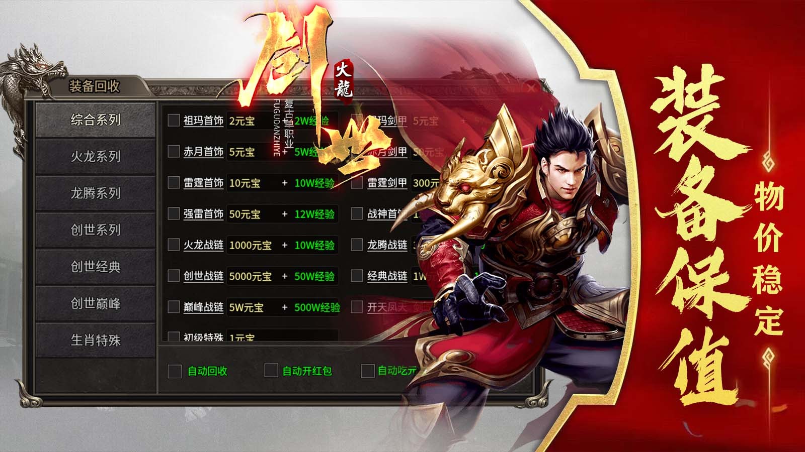 名典创世火龙为玩家带来热血的火龙版本传奇玩法,本服元宝装备保值,长久耐玩,上线就送自动回收,自动捡物非常复古的情怀场景和boss任玩家游玩,野怪也能够掉落强力的神装,散人轻松即可到达终极,让你能够重温热血时光,享受不一样的冒险。