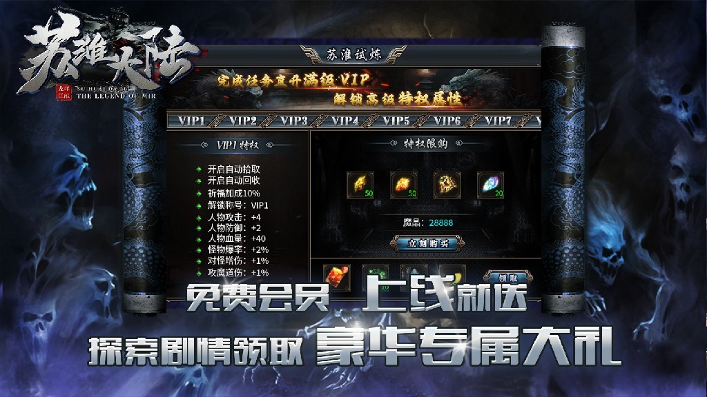 1、保持每日在线,可领取大量货币及特色功能猎魔历练值。