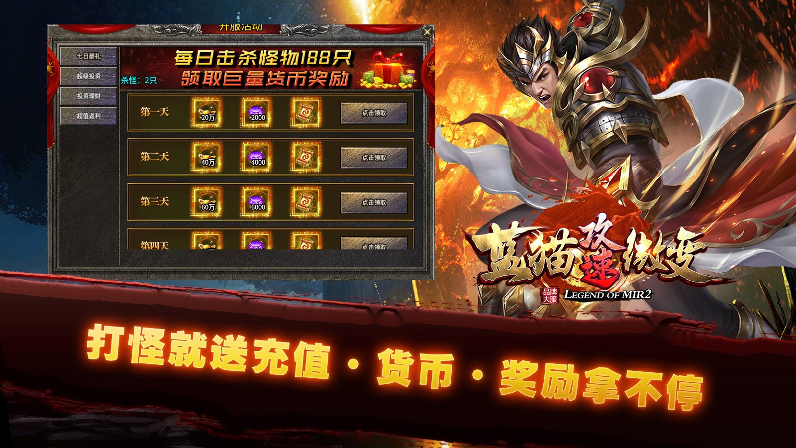 蓝猫攻速微变为玩家带来热血的传奇游戏,开放式的场景地图,多种精彩的副本和场景等待着你的探索,野怪boss即时刷新,随时都能够加入到精彩的战斗中,阻挡讨伐强大的敌人,瓜分强力的神装和武器,体验机制的战斗快感,享受不一样的精彩冒险。