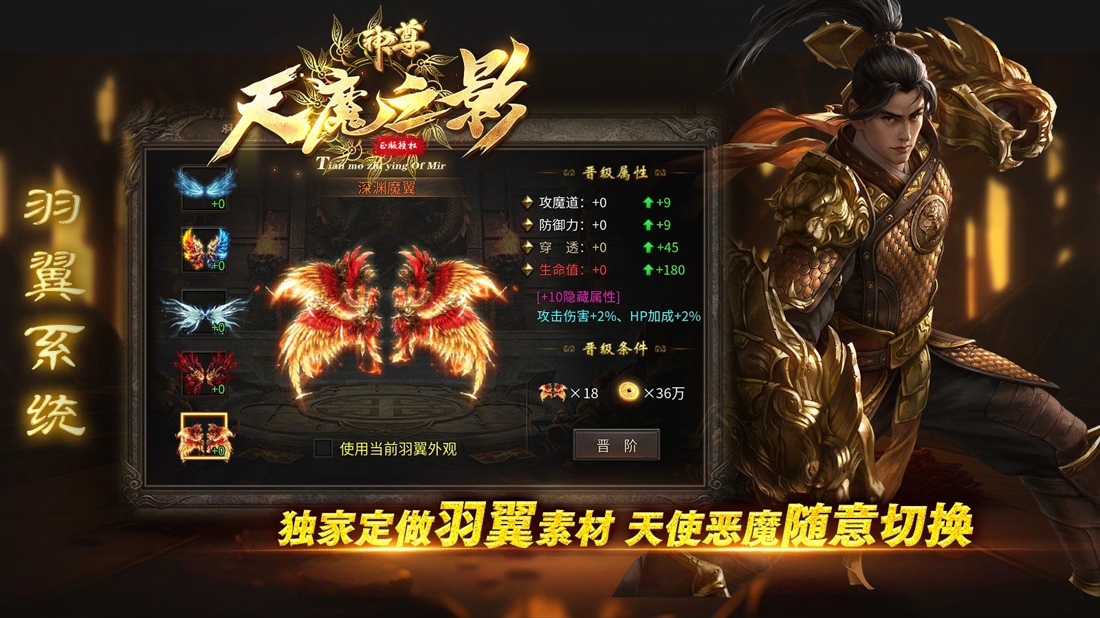数十种炫酷翅膀!属性超强!每种羽翼对应不同材料进阶!所有怪物均可爆出!