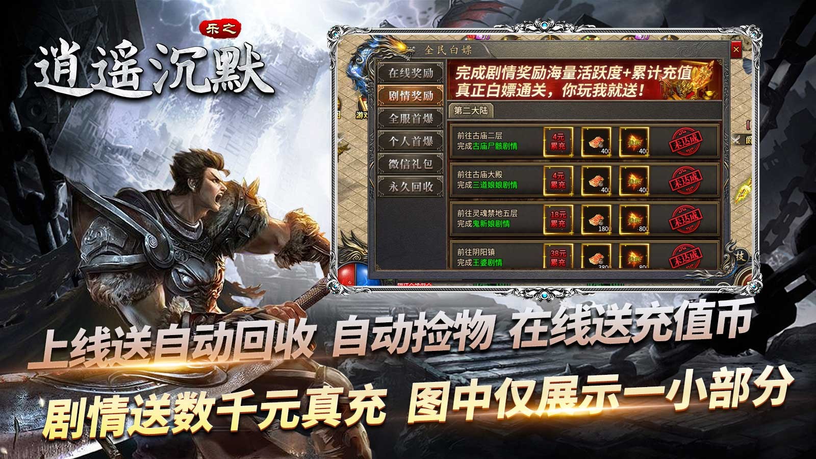 4、上线即送赞助会员,自动回收,自动捡取,半月弯刀,开天逐日。