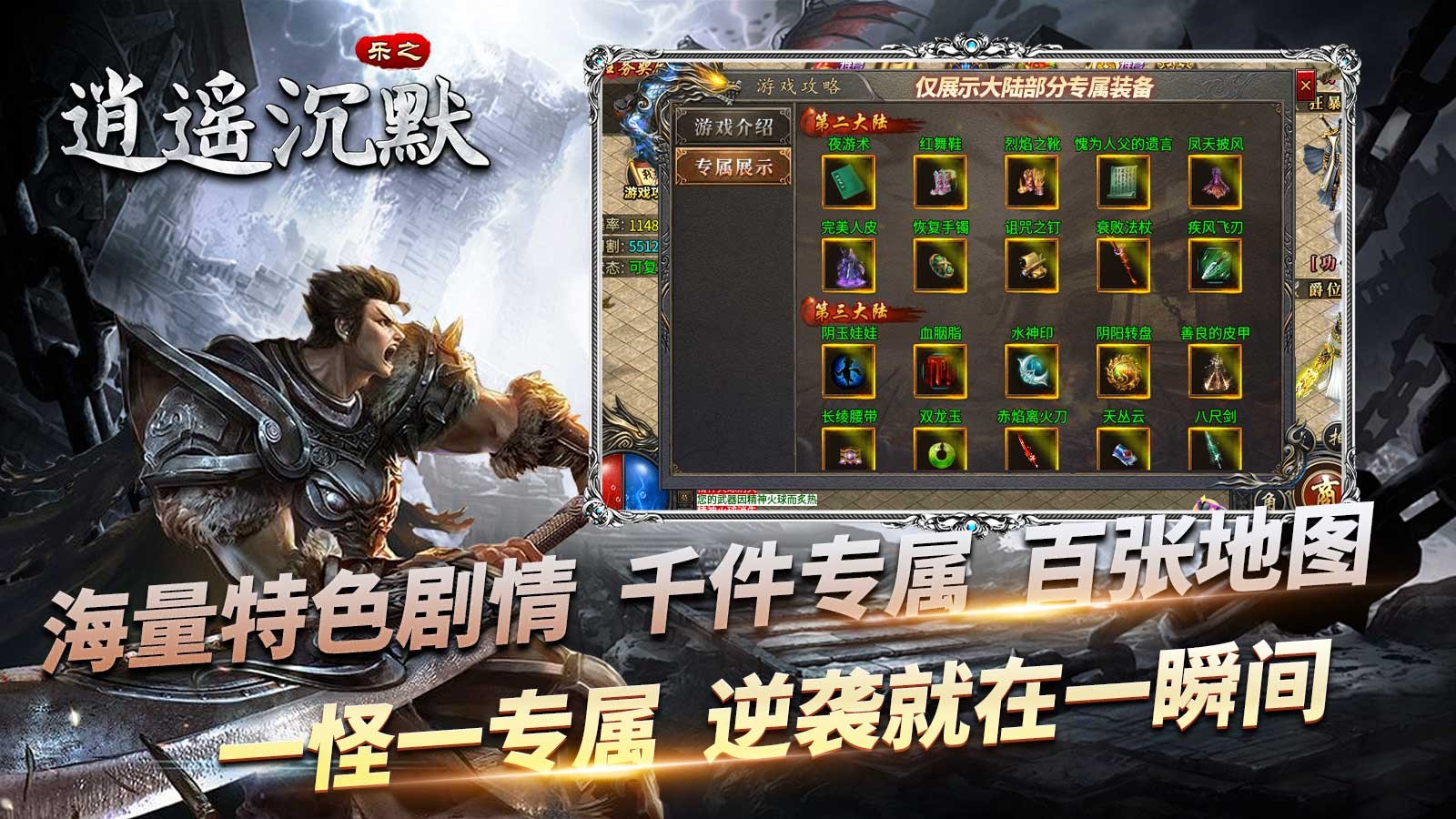 乐之逍遥沉默为玩家带来专属版本的传奇冒险玩法,在游戏中有着超多精彩的地图,所有的区域都能够自由探索,整体长久耐玩,一切靠打,海量的副本挑战,诸多精彩的场景的等待着你的加入,享受不一样的冒险,畅玩整个世界。