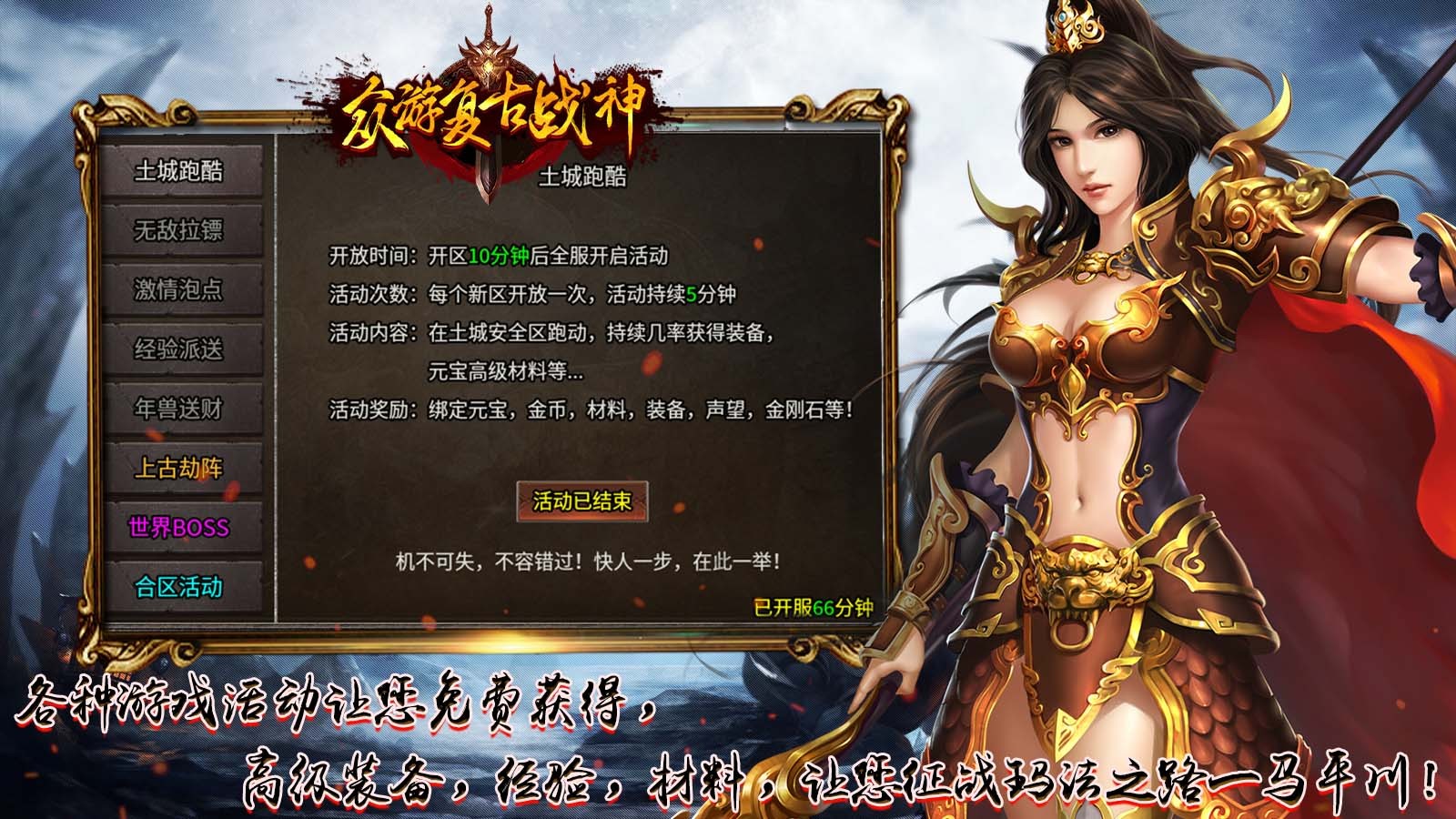 众游复古战神是为1.80小极品,10特色复古版本, 游戏内boss即可爆出一切,散人也能追梦,所有的地图场景都能够自由探索,闲置中也能获得大量的奖励,一键自动拾取,自动回收,花时间即可到达终极,重燃传奇的热血激情。