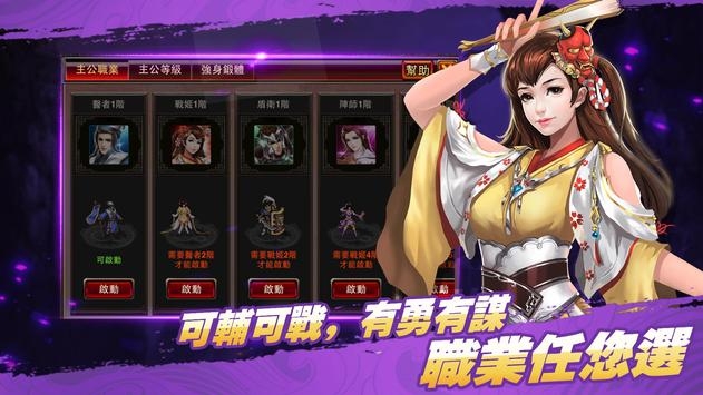 玩家将扮演掌控整个国家的君主,建城练兵,武将养成,巧布阵型,善用计谋,运筹帷幄,消灭对手,成为三国的真正王者!