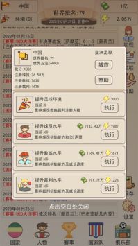 你将成为足协的成员,接管足协的所有事物,想办理比赛选出优秀的足球运动员,然后组建你的球队,不断的去经营球队,训练球队,让他们可以加入世界杯,成为足球界的巅峰。