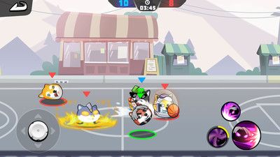 玩家将在游戏中操作自己的狗狗进行攻击对手,抢夺篮球,投篮获得更多分数。
