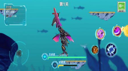 你的机器人可以变成超级动力的机械鲨鱼,在水中寻找各种猎物。
