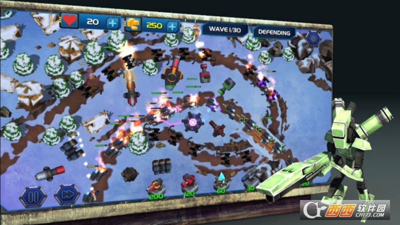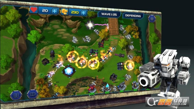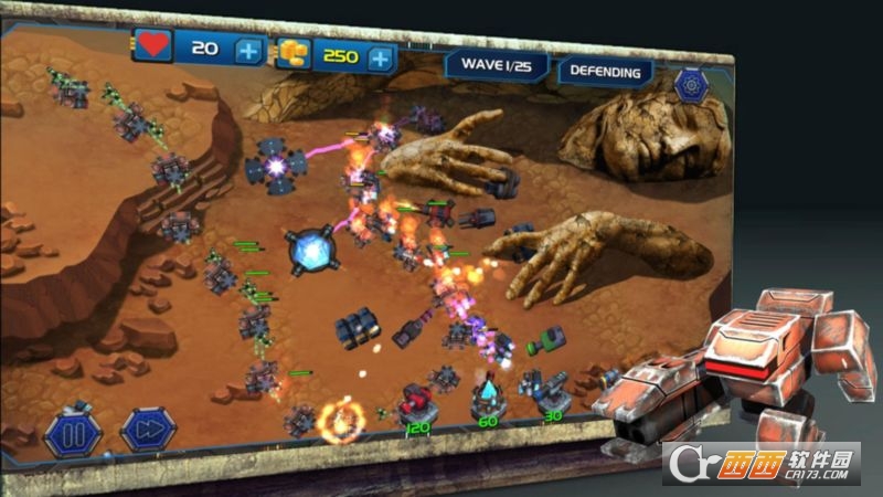 此塔防游戏会给你一个机会去成为英雄抵御邪恶的机器人,并保护你的土地。准备好发现的6个独特的枪炮的力量:机枪,火箭炮,冰枪,电炮,消防枪和坦克炮。您可以将您的武器,提升到极致的级别,你的战斗将在各种亮丽的风景线发生:海滩,森林,山地,沙漠,冰,火山等。