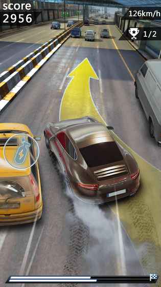 左右点击屏幕控制赛车左右偏移,注意观看自己的油量,跟在油车后面可以加油,如果发现你的车后有警车追击,一定要小心,千万别发生碰撞,否则就会被警车抓住。