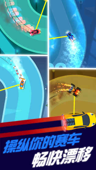 2、在各种各样的的赛车轨道开始比赛,避开障碍物,利用高超的漂移技术完成对手;