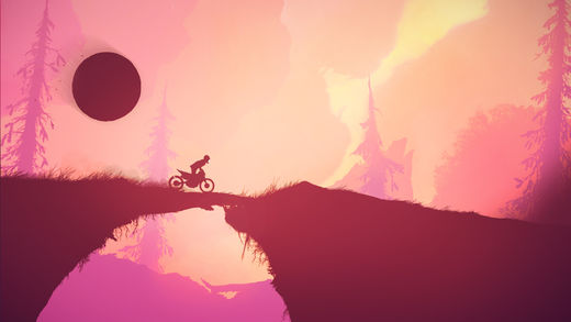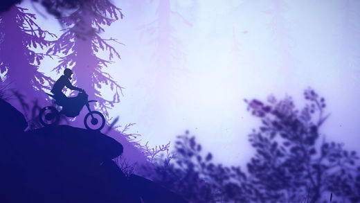 游戏采用了2D横版模式呈现,画面背景设置在了梦幻丛林之中,前景以黑色铺垫,仿佛相机曝光过度一样,只能看到黑色的路面以及车手,反而是远处的背景能看出姹紫嫣红的丛林风光,时而黄昏暗淡、时而明媚阳光、时而蓝色魅惑,让人感叹大自然的无穷魅力。相比喧嚣吵闹的都市而言,朦胧中的丛林风景仿佛更有韵味,这种温馨的感觉直暖人心,让人们放下所有的压力与拘谨,在大自然中肆无忌惮的玩乐;