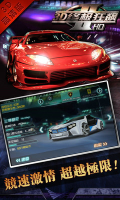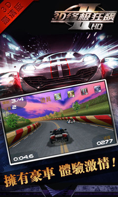 《3D终极狂飙II》高清版,经典赛车游戏中一部闪耀夺目的精品大作!全球最流畅真3D赛车Android游戏,三千万玩家鼎力推荐,无需额外数据包,完美支持所有手机哟!游戏内云集了各款经典豪车,精美的画面、丰富的道具、变幻莫测的赛道战场,令玩家深深的陶醉在超爽的竞速体验之中!快发动引擎!轻松玩转,让我们尽情陶醉在超爽的竞速体验之中!免费试玩,还不马上体验。