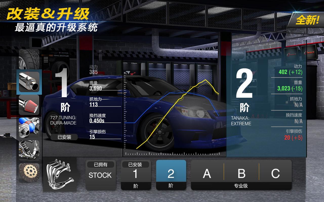 利用数百种高性能零部件,组装近千种配搭来提升赛车功能 - 从空气过滤器到曲轴应有尽有,让它们激发赛车的卓越性能。加装氮气加速系统或涡轮、Volk 竞速轮毂、定速装置和固态继电器等名厂定制的轮毂以及现实世界中的Nitto 轮胎,让您的游戏更加精彩刺激!