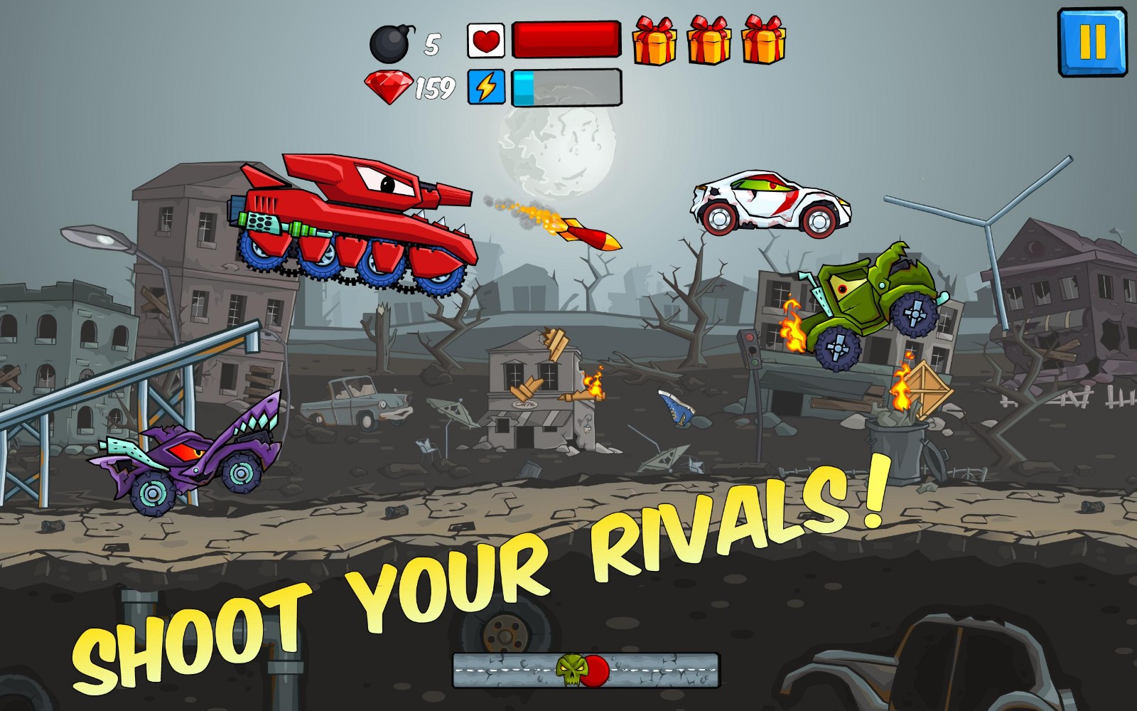 《汽车追逐战3》(CarEatsCar)是一款很有趣的赛车小游戏,该系列的第三部,带来了全新关卡,更多的道具,让游戏更加有趣。游戏中,小汽车世界的捕猎战争又开始了,坏蛋卡车疯狂来袭,赶紧驾驶你的迷你小汽车一路飞驰,越过重重障碍,消灭敌人,尽可能多的收集宝石,顺利到达终点。