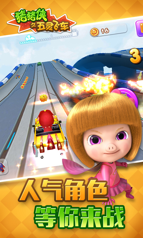 人气爆棚的动画角色,化身勇敢的猪猪侠,呆萌的小呆呆,BOSS一般的超人强,驾驶着酷炫的赛车在赛道上与对手一较高低!