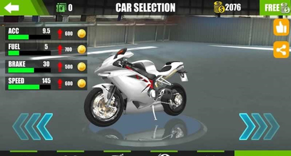 1、在游戏里玩家需要操控各种不同类型的摩托车,并在高速公路上自由行驶;