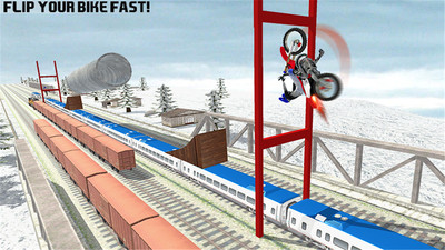 《火车摩托特技》是一款非常刺激好玩的摩托闯关游戏,玩家将驾驶自己的摩托成,在火车赛道上尽情展现自己的驾驶技术,流畅的操作系统,喜欢的玩家快来下载试玩吧!
