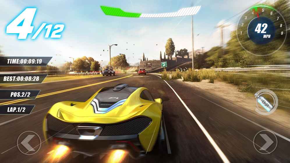 游戏有3种控制方法,分别是重力感应,按钮操控,和轮盘操控;重力感应通过摇晃手机来控制赛车,而按钮操控是通过左右手控制左右方向键以及加速、漂移键;轮盘操控是通过左手控制方向盘,右手控制加速、漂移,模拟真实开车的感受;在不同赛道控制你的赛车去打败各种各样的对手,用你惊人的速度获得第一名吧!