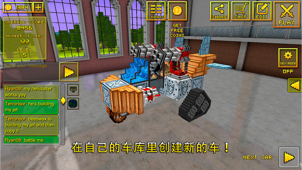 *收集方块,打造迷你汽车或者巨型坦克怪兽