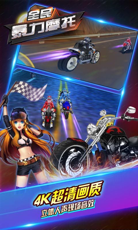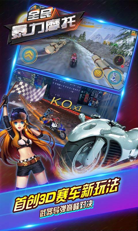 1、最强摩托出击,创新的多人即时pk,全新高清赛道,体验极致4K画面游戏;