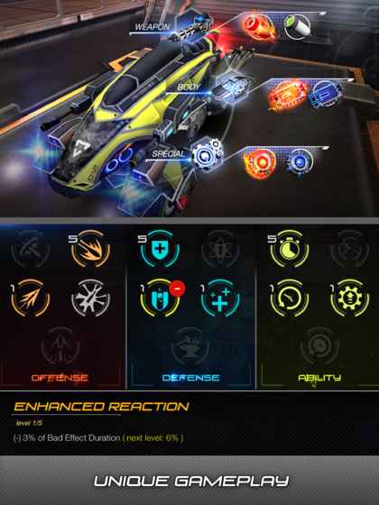 庞大的特色芯片系统与技能表结合在一起会帮您改善赛车的属性。