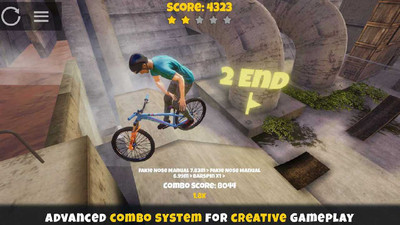 2、游戏加入了丰富的极限特技的元素,4种平衡类特技,4种旋转类特技,8种动作类特技;