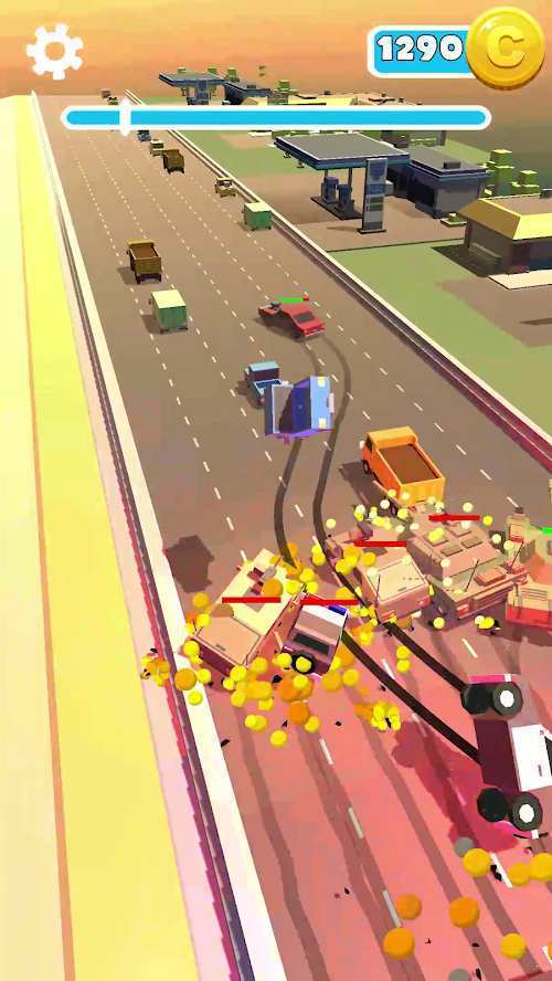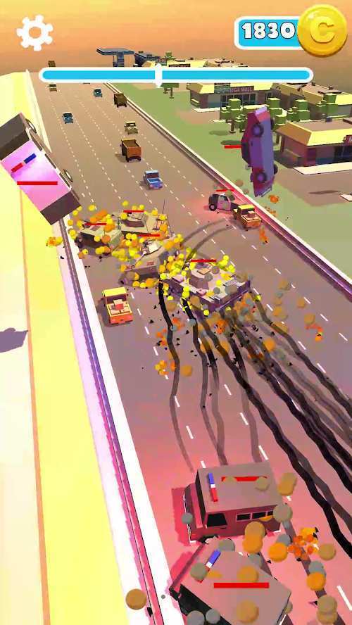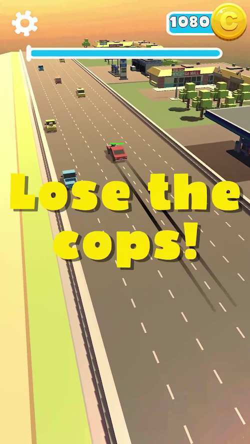 玩家需要利用障碍不断地闪避并且保证自身不会被警车追上摧毁他们的车辆。