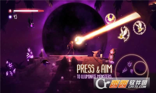 点击屏幕让法老王对着怪物释放光束,当光柱在怪物身上照射足够长的时间生成一个完整的圆圈时,松开手指就可以消灭怪物了!