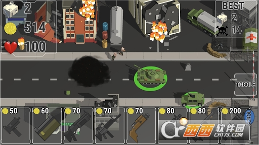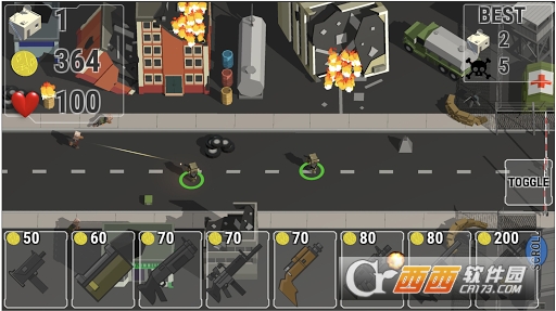 敌人的一次次入侵,为城市带来不同的伤害,而你的任务就是用武器击退他们,游戏中为玩家准备了不同的道具与武器,你可以选择不同的武器来击退敌人哦,武器的伤害程度不同,选择的时候可根据自己的喜好来进行挑选,喜好的玩家快来下载试试吧!