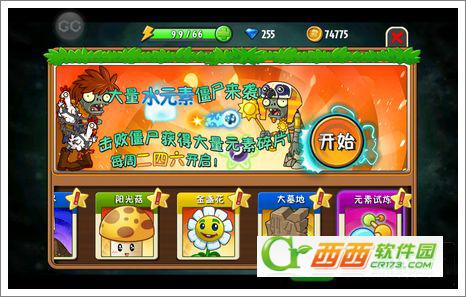 每周二四六开启!大量水元素僵尸来袭,击败僵尸获得大量元素碎片!