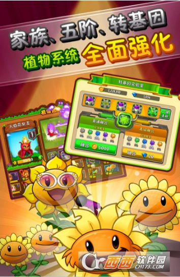 植物们与僵尸们史诗般的斗争,将在不同的时空维度中进行续写!新的植物,新的僵尸,新的玩法,结合最先进的触摸屏技术,玩家可以打破传统意义上的塔防,直接加入僵尸抵抗战。伴随植物大战僵尸2回归的还有疯狂的戴夫,新的触屏超级道具,新的神奇植物能量,用新的方法保护你的大脑,快来加入疯狂戴夫穿越时空的疯狂冒险!