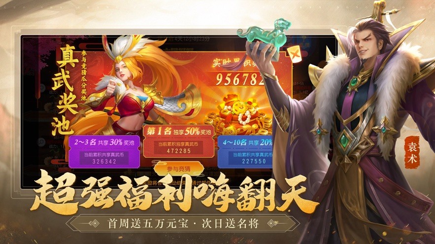 【版本新增】1.新增汉将:枭骨袁术2.新增神武:天罗伞3.新增命格:月朗天门4.新增战法:锋不可当5.新增橙升红战马:暗夜紫骍6.新增武将皮肤:庞统7.新增金宝物8.新增战斗进度条9.新增山野探秘地图:暗林惊风【版本优化修复】1.系统优化:阵容界面红点优化2.系统优化:新增武将碎片一键合成功能3.问题修复:修复108回主线副本赵云气泡文本错误的问题4.问题修复:修复军团变更后不会及时更新跨服军团参加权限的问题5.问题修复:修复花灯庙会积分奖励会因为开服区间临界显示错误的问题游戏信息