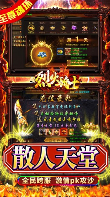 烈火骑士暴击魂环觉醒让玩家刀刀暴击切割肆意斩杀各路敌人,各种各样不同的挑战关卡等待着你来完成,游戏画面精美,世界观恢宏庞大,人物造型华丽,技能特效炫酷无比,多模式PK等多种特色玩法,全面颠覆你对游戏的认知,激发你的战斗欲望!