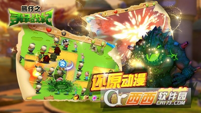 本游戏是一款根据动画片风格制作的游戏,由《熊仔之寻绿战纪》大型3D原创动画正版授权,游戏容易上手、老少皆宜,内置新手引导。游戏含有丰富的关卡和主题包,拥有各自风格特色的多种防御英雄,有趣的音效设定和搞怪的怪物造型及名字大大地增加了游戏的趣味性。玩家还可以收集道具和怪物,完成更多的成就。