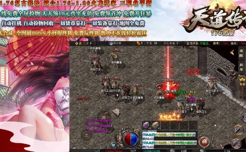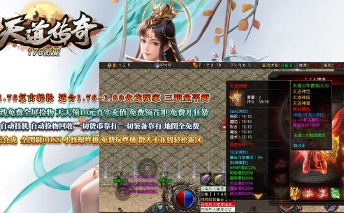 天道传奇,176极品微变,激情演义刺激的传奇打斗玩法,激情火龙传奇版本,连续登录获取非常丰富的资源礼包,轻松自由的竞技游戏感受,散人专属福利版本,三职业轻松平衡,感受激情的传奇青春,打怪轻松爆资源,大量的红魔野怪等待玩家们踊跃去挑战,获取稀有的传奇圣兽。轻松成为传奇土豪。非常值得尝试的传奇竞技游戏。