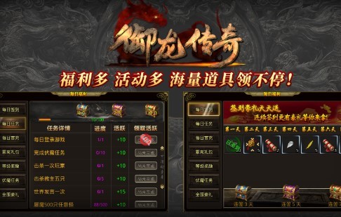 1.福利:上线送满 V,百万绑元免费领,每日签到领红包,特邀内玩获龙皇装备,充值比例:1:1000。