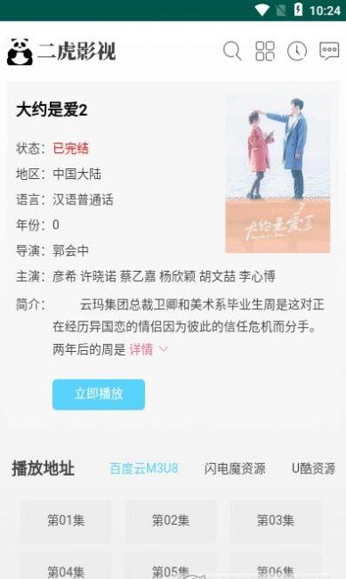 二虎影视app是一款提供丰富的手机影视剧追剧互动平台,用户可以通过软件进行免费的追剧看电影服务,带给你高清影视剧观看平台,汇聚了大量的国内海外影视剧资源,让你通过平台进行精彩剧情的手机观看,还有最近的电影大片带给你优质的视频互动观影服务。