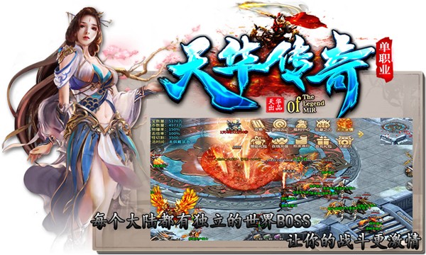 天华传奇是1.95版的单职业传奇手机游戏,在游戏中,玩家可以在白嫖免费获得大量福利,前期发展更加轻松。而且这里所有的地图都是免费开放的,所有的装备都可以通过打怪物获得,对散装玩家非常友好,喜欢经典的天华传奇系列游戏的玩家别错过,赶紧下载试试看吧!