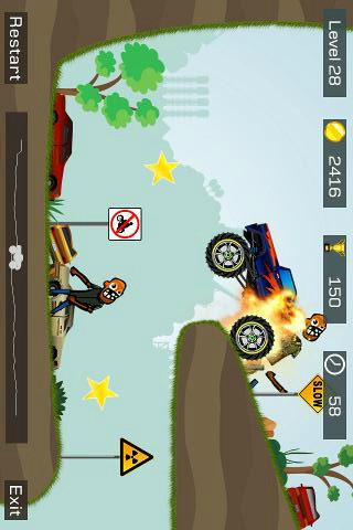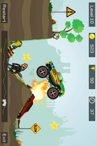 - 沿途收集金币在商店里面购买新的车型。