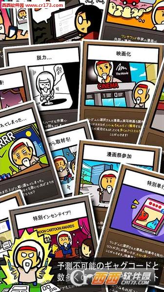 经营类游戏,点击屏幕上的漫画家加快赶稿速度,获得金钱与点赞,购买画漫画用的道具和家具,聘请新的漫画家和助手。