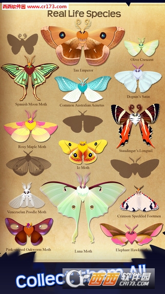 每种蝴蝶都有学名和简介,从底部孵化后放在树上喂叶子,经过4龄后化蛹,羽化后可以产金币。还可以与猫头鹰对话给它找蝴蝶完成任务。抓萤火虫给青蛙出来特定属性的花。花可以放在底盘上孵化不同属性的蝴蝶。超可爱~