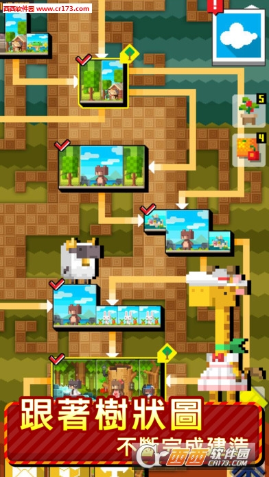 只有拥有足够多的材料就可建造出数量够多的屋子来容纳动物伙伴,让像素大树成为动物们的乐园。目前游戏已经上架移动双平台。