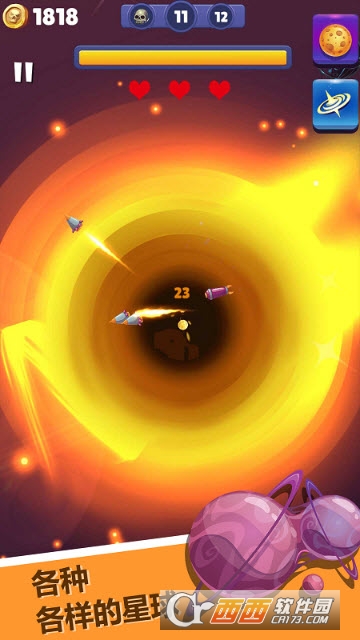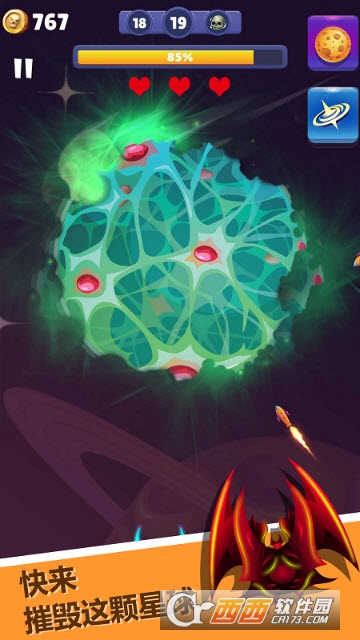点击华丽的行星并发送火箭爆炸它,并达到一个新的水平。