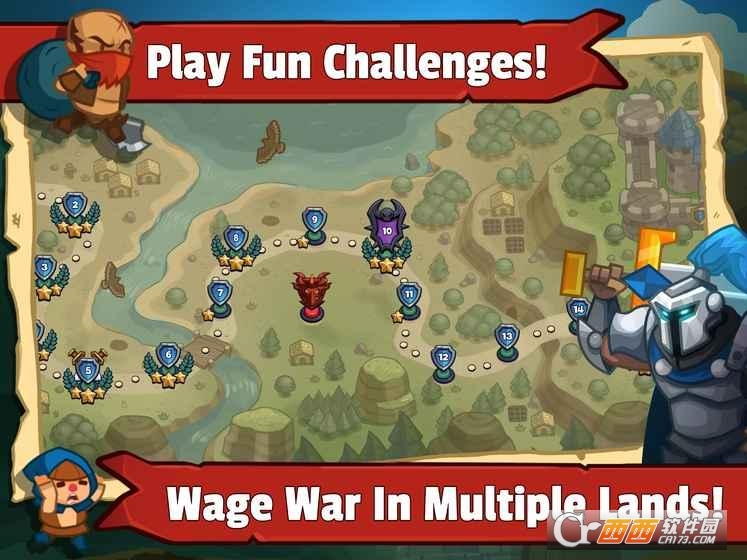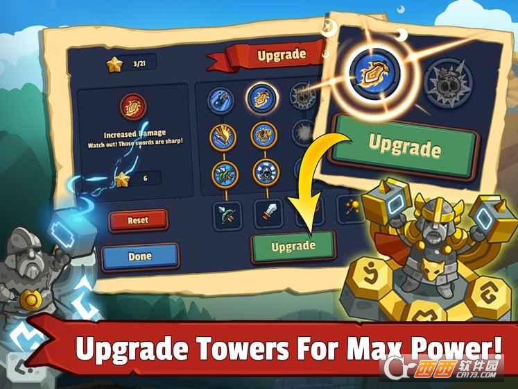 部署速射弓箭手!在地图上用魔法光束切开墙壁!发射咆哮大炮!召唤盟友!帝国保卫战提供不同的选择和挑战。用战略和机智在胜算很小的局面中获胜!在这个杰出的塔防类游戏中,救援手无寸铁的村民,收集重要的资源,并一路招募有着致命能力的传奇英雄,阻止邪恶。