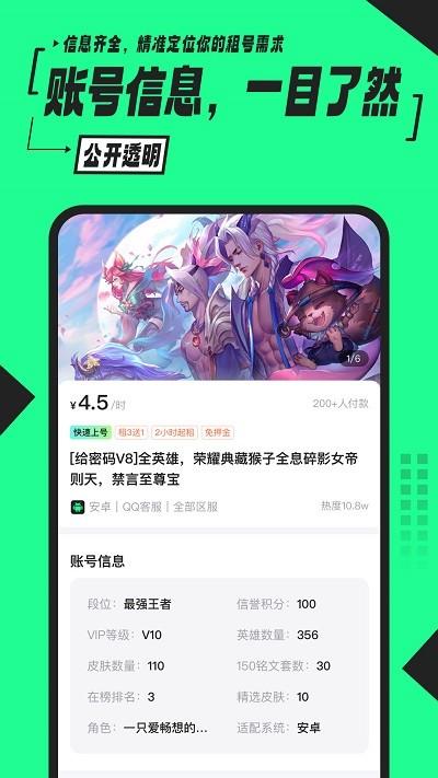 【公开透明】账号信息齐全,一目了然, 精准定位你的租号需求
