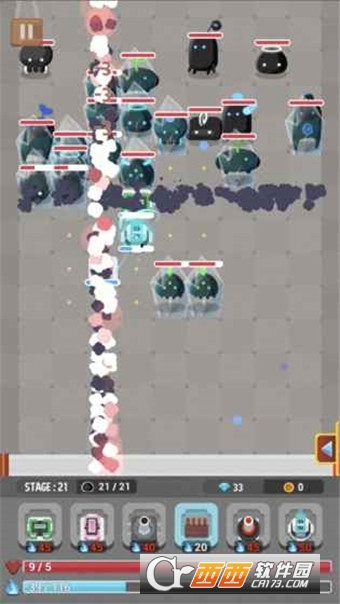 后期(250层以后)最快方法是在底部建一排纵向炮6~7s搞定,但是这种方法要求较高的初始蓝量(90+)纵向炮大约要35级才行。