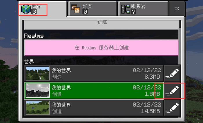 2、点击“世界”,选择“我的世界”右边写入点击进入