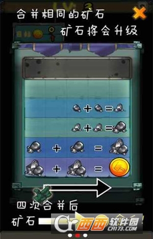 4.当矿石被合并四次之后就会变成金币;收集足够的金币,就可以通过当前关卡!