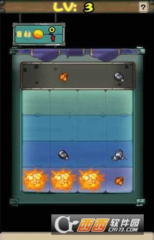 3.点击界面里的炸药,可以根据炸药等级炸毁一行里的数个矿石、以腾出足够空间来合并其他的矿石;炸药等级可以通过图标上的雷管数量来判断;
