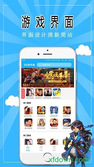 巨6游戏盒是一款手游集合app,这里边具有风丰富的游戏资源,各种游戏福利等着你来拿,海量的礼包加载就领,选择你喜欢的游戏,快一起加入这个大家庭吧~非常有意思哦!喜欢的玩家可以到旋风软件园下载哦!